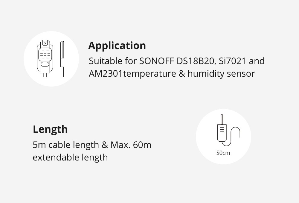 - สายต่อเซนเซอร์ยาว 5 เมตร ใช้ได้กับเซนเซอร์ของ Sonoff ทุกรุ่น