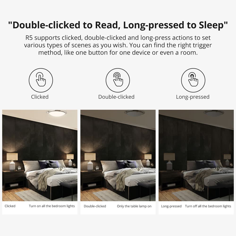 - รองรับการกด 3 ลักษณะต่อปุ่ม ตั้งค่าการทำงานอัตโนมัติร่วมกับทุกอุปกรณ์ของ Sonoff ได้ 18 Action เช่น กดปุ่มที่ 1 หนึ่งครั้ง ไฟห้องรับแขกและไฟโรงรถติด,ก่อนออกจากบ้านกดสองครั้งหรือกดค้างเครื่องใช้ไฟฟ้าที่ตั้งค่าการทำงานอัตโนมัติไว้จะดับ
