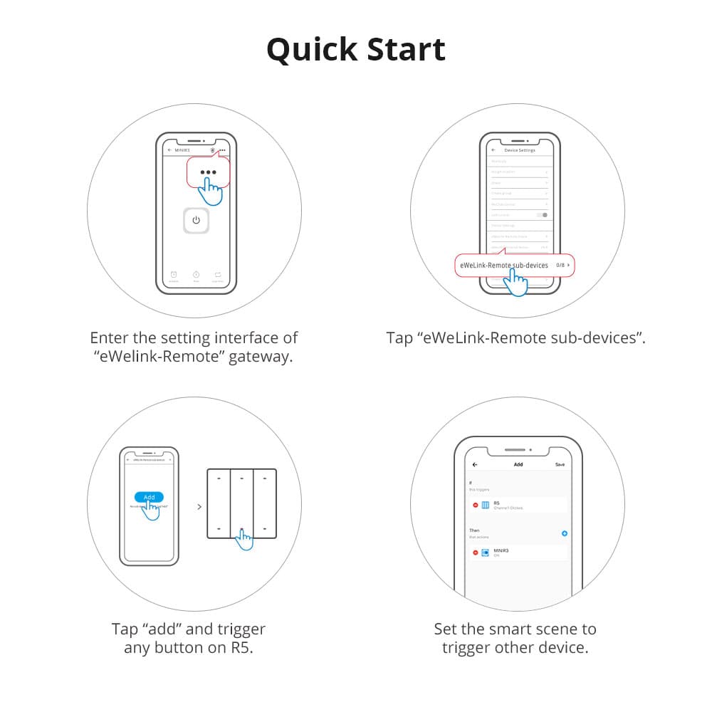 - จำเป็นต้องมีอุปกรณ์ Sonoff ที่มีฟังก์ชัน eWeLink-Remote Sub Device (M5 , MINIR3)