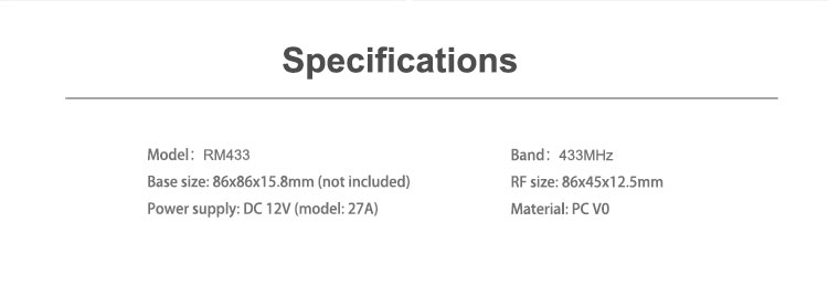 | Specification | Model : RM433R2-BASE |