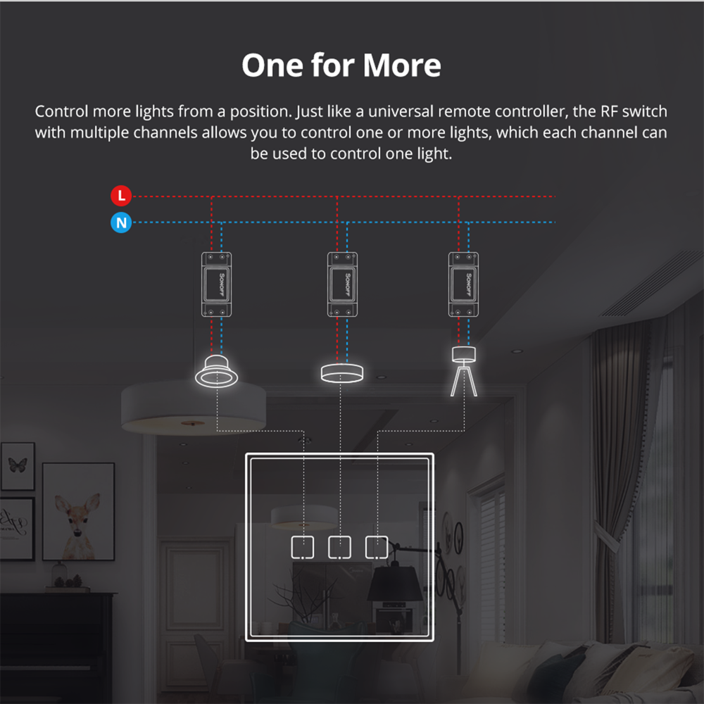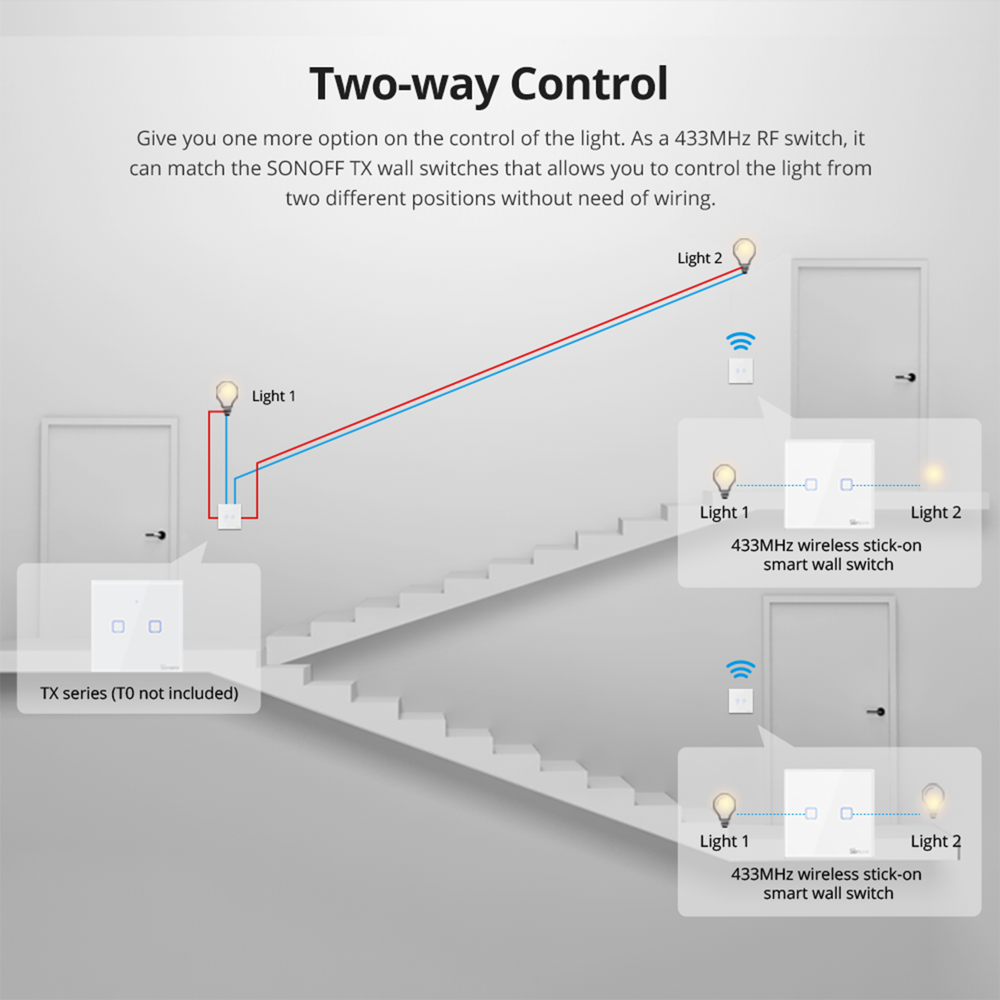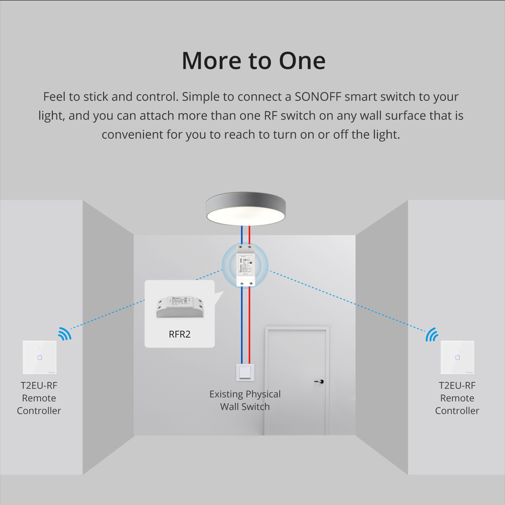 - ใช้งานได้กับอุปกรณ์ Sonoff รุ่นที่รองรับ RF433MHz เท่านั้น