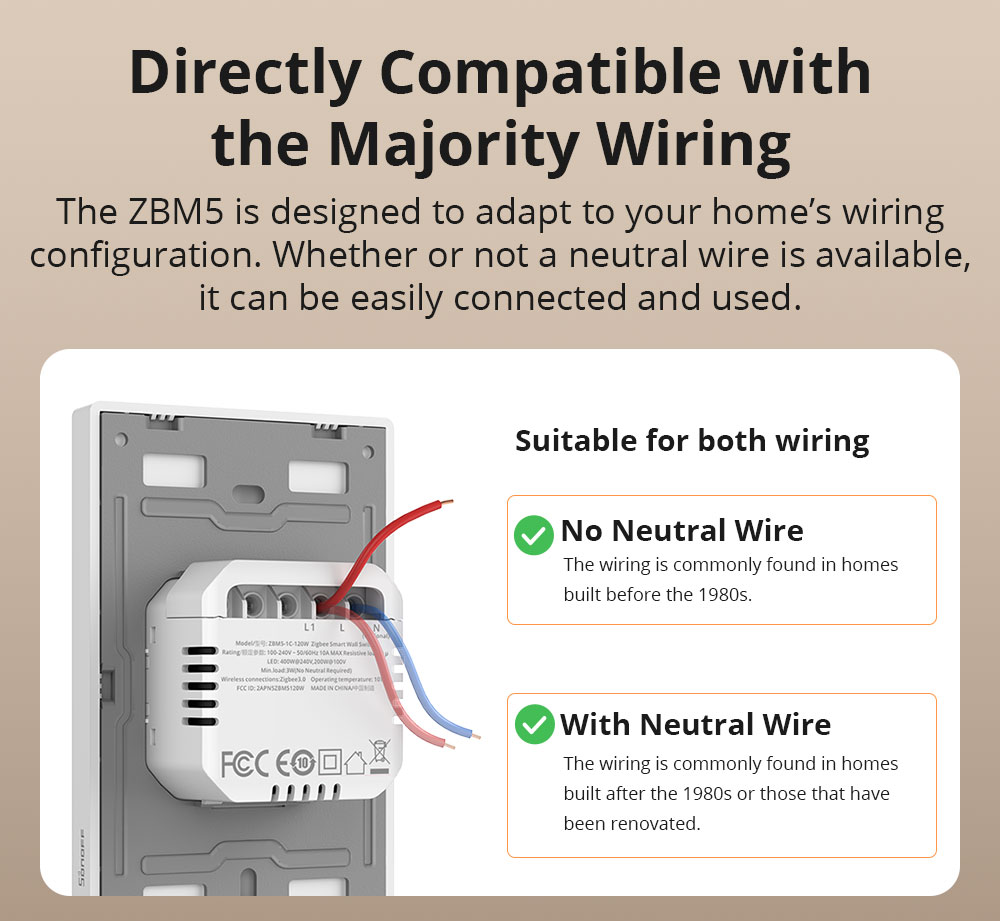 - เป็นสวิตช์ผนังอัจฉริยะ Zigbee แบบปุ่มกด รุ่นใหม่ติดตั้งโดยไม่จำเป็นต้องใช้สาย Neutral
