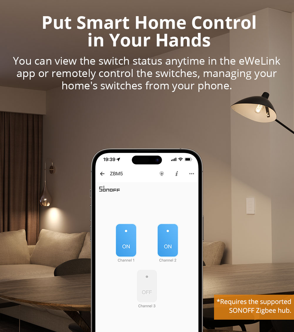 - จำเป็นต้องใช้งานร่วมกับ SONOFF Zigbee Hub